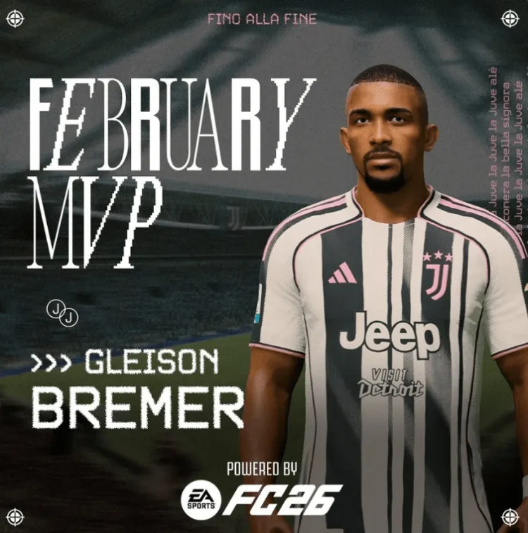 虎扑03月05日讯 尤文官方消息,后防中坚布雷默当选球队2月份最佳球员。